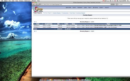 76769163-1 3/22/11 4:27pm $400.00 $432.00 Pending 3/22/11 7:05pm* Reduced*Hockey* 5 Florida Panthers/New York Rangers Under 5*+108**