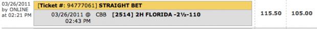 #3You're trying to show off by posting a $115 play at -2.5 -110 that moved to -3 -105?Originally posted by illfuuptnMoved to -3 -105 at close. Am I the best? SBR?Comment -