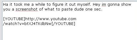 Just type it in exactly like that screenshot, and it will work guaranteed. Paste the link you've tried adding in those brackets as typed, and then refresh the thread after you posted it. It will not show right away, just refresh the thread after you hit in.