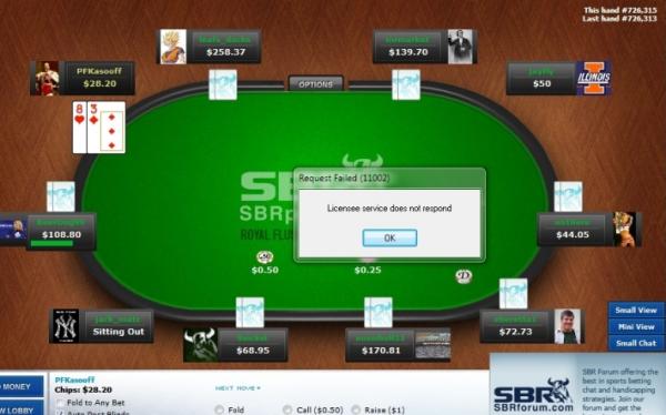 it's because you didn't pay for your license to play sbr poker. PM me for more details.