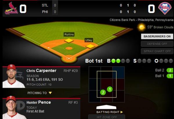 umps on philly. calling a lot of balls so i pull up gamecast and here are the first 2 pitches i see to hunter pence with ryan howard behind him after he already "walked" chase utley
