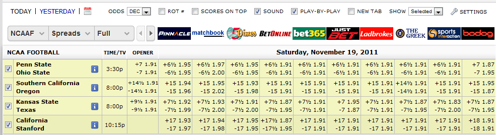 In line with my post above, some games have started, some games have finished and the pagehas 'decided' that I would like to see what is going on in the Washington State/Oregon match (not selected by me) and taken away the Penn State/Ohio State game (which I have selected).Comment -