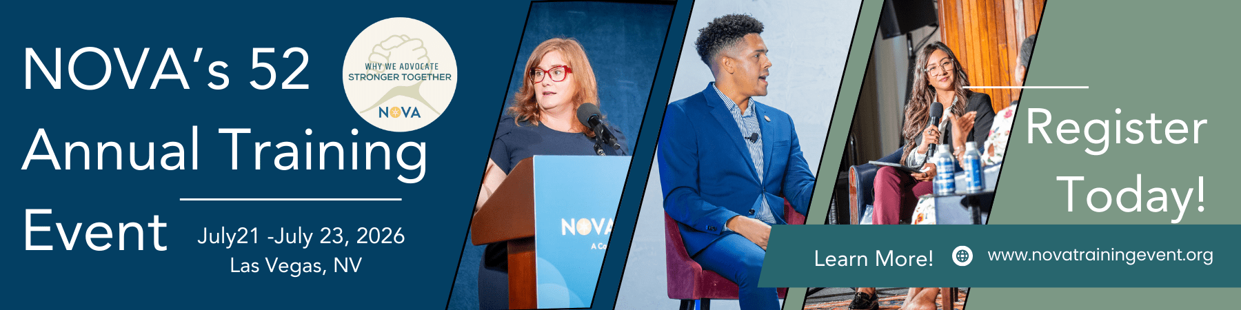 National Organization for Victim Advocacy A Community for Advocates Join Us Leading the Nation in Victim Services and Crisis Response Since 1975 At NOVA, we train advocates and crisis responders so they can provide effective and compassionate victim assistance. We offer credentialing to ensure those working directly with crime victims meet and maintain the highest […]