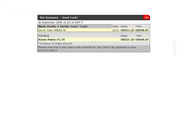 OK, Im putting 25 on the under in the Fla-Miami for Bread and I want one NFL game for tommorow from PIMIKE, post it here.
