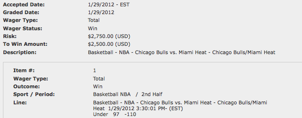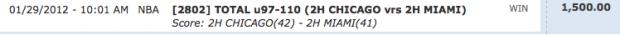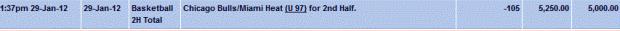 I hit the fukkn under 197.5 live betting too... basically it was betting under 50.5 4th qtr total... in a bulls/heat close contest... it was a LOCK, only thing that would make it lose was OT. Not a genius bet