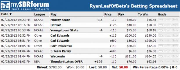 Will also be tracking in Spreadsheet, but will try to remember to post every pick here and hope that i'm either really good fade or tail material.