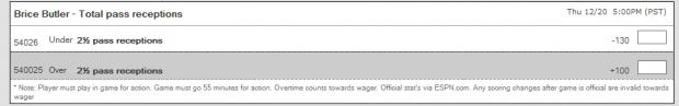 99.9% of the time when placing a bet the Under will be on the bottom and the Over will be on the top but occasionally for whatever reason a book will have the Over on the bottom and the Under on top. I'm sure it's a mistake by the book but it's nearly gotten me into trouble on several occasions. I usually catch it... but not today I didn't. When I got home today I was happy to see that I had nailed an Under prop bet(or so I thought). When I looked at the graded wager it said that I had bet the Over. I'm 99% certain that I clicked the bottom box because the way I have it written down in my notebook corresponds with my wager and the way it was written on the screen.