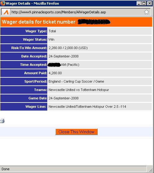 Wager details for ticket number 43907340-1: