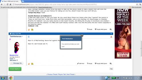 A little late night action to wet your beak. No one cared about these two teams when they “opened” the season in Tokyo so why start now. Aside from Ichiro and Felix Hernandez—who is not starting—it’s JasonVargas vs. Brandon Mcarthy for Oakland—can you name anyone on this team? Exactly. It’s fitting the A’s play in Overstock.com stadium—because just like the website—it’s filled with stuff nobody wanted. Still I love this McCarthy Kid and Yoenis Cespedes in his American debut,