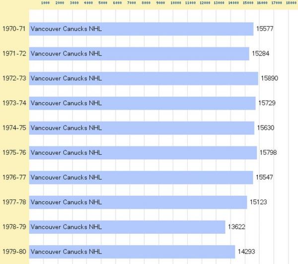 places like vancouver and LA were averaging 8-9000 fans a night in the 70s and would sell out when the bullies came to town.