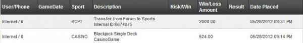 | User/Phone | GameDate | Sport | Description | Risk/Win | Win/Loss Amount |