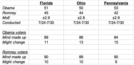 The 3 most important states in this election that are "undecided". Obama leads in ALL of them, like i told you before