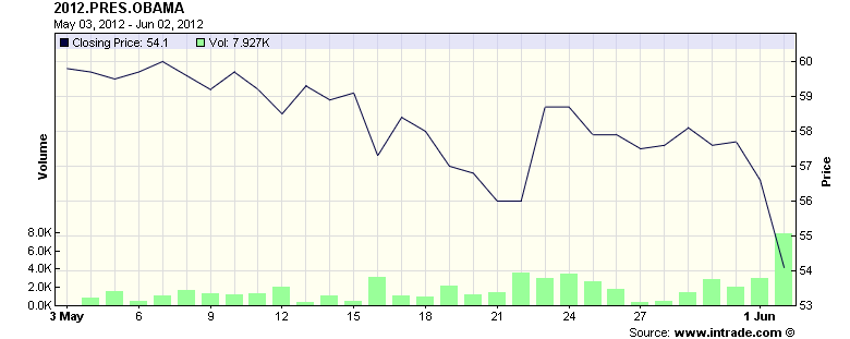 #15The above chart is the exchange traded prop Will Obama be elected? Ain't looking good for team Obama. Maybe he can break out another I will unite us! speech...LOLComment -
