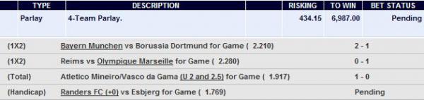HandicapRanders FC (+0) vs Esbjerg for Game.-11990.00 75.63 PendingDenmark - Superliga2590880-1