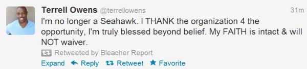 #14You don't think that sounds like TO? Wouldn't it sound more like "I no longer is a Seahawk, but my faith still be intact"Originally posted by Ghenghis Kahnyou know he didn't write that shit. can't believe he can still afford a publicist...Comment -