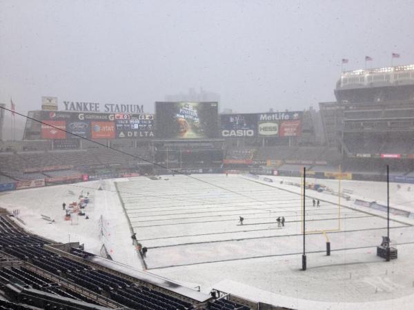 #3328once it hits the grass & gets it damp is what makes the footing difficult as you can seeOriginally posted by CircleKFYI: zero accumulation in NYC. I live 3-4 miles SE from Yankee stadium in Long Island City, Queens. While it was snowing earlier, it melted upon impact. There is just some light rain and no winds at the moment, and it looks like the core of the storm will pass the area before kickoff, or maybe by end of 1st quarter. Nonetheless, under seems to be the better call. Bronx webcam HERE