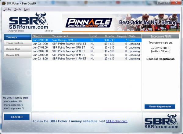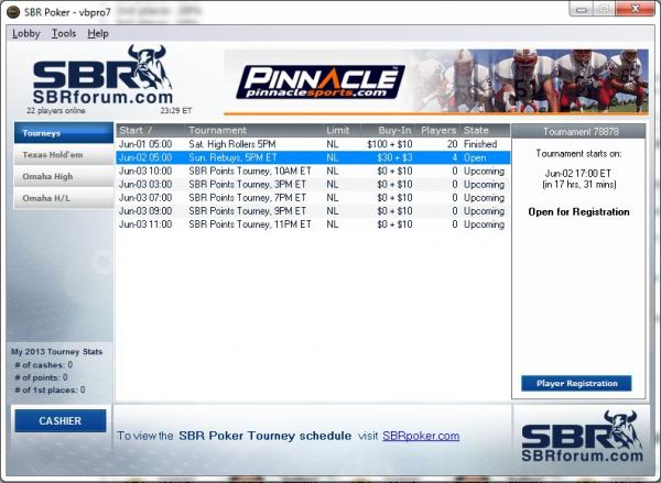 I want in for 500 but it seems like no one wants any action here at sbr and this is a dying contest. 3 people just isn't gonna cut it for my poker contest itch. I'd rather make a 25pt(500pts/20 tournys) last longer bet with someone everyday. If there are at least 9 people including me i will go in for the majority pool which seems like it might be around 100pts.