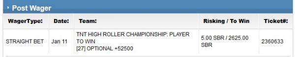 Jan 11 05:00 PMJan 11 10:09 AM TNT HIGH ROLLER CHAMPIONSHIP: PLAYER TO WIN