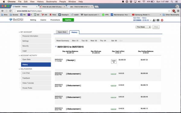 505pm- E-mail from betdsi stating my information is cleared and I can now cash out