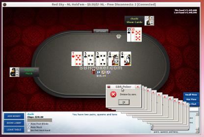 but ... I run linux and run the sbrpoker in emulation mode which might be an issue but while I had disconnect issues back at the beginning when first playing here never had a divide by zero popup like that ...
