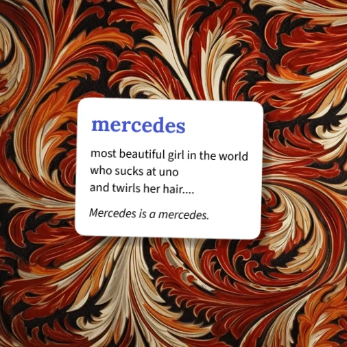 Mercedes is a true meaning of a unique girl. You will never meet any other that will compare to her originality. She is amazingly hot with a tight frame and a phat ass, has her own style with intelligence and common sense that makes you want to talk with her for hours. A true friend that you can call at 3:37am and she'll answer. Likes to go fast (literally) and she will be the one driving. Don't think about pushing your agenda on this girl, she has her own morals and goals buried deep in the rocks and no pick up line is going to shake that, even though it may make her laugh. Pretty much don't penetrate with her, she can kick your ass. Mercedes may want to rob a bank in the morning and go fishing in the afternoon, better come prepared. She is strong-willed but compassionate and has many sides...when she wants you to see them.