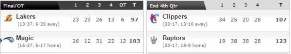 Lakers and Clips both start out strong, uh oh for one of 'em. The Good news for the Lakers...Toronto is the kind of team that can comeback, even on the Clips. Bad news for the Lakers...the Lakers are the kind of team that can ass out real bad.