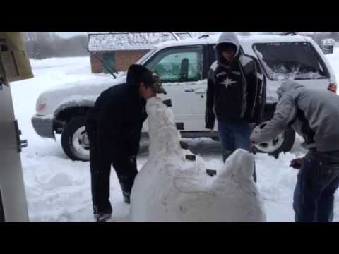 of Jeffrey Dahmer standing next to his packed bong made out of snow