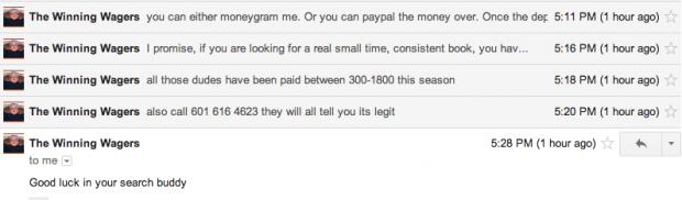 #60In my online poker days I was a member of 2plus2. I was scammed in a transfer between 2 poker sites because I made a trade with someone who bought someone else's dormant 2plus2 account. Laclippers reminds me of that. A legit account with no ref flags dormsnt for a while is all of a sudden promoting a site. I'm with you, tto. I get what youre saying.Originally posted by tto827Clips disappeared for who knows how long. Comes back making a thread saying how he just lost his job. Within hours, he is pumping a bookie who is contactable only thru an email account or cell phone.