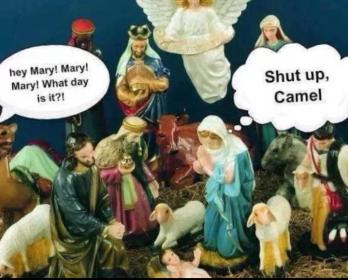 #19a third grade student drew a picture of a manger scene. the teacher asked him who is the big fat guy in the back . he replies why thats round john virgin of course.Comment -