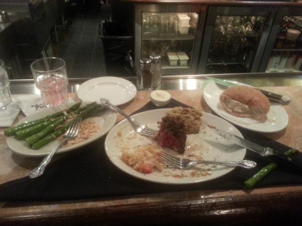 #5Del friscos steak, Caesar salad, au gratin potatoes and sautéed mushroomsComment -