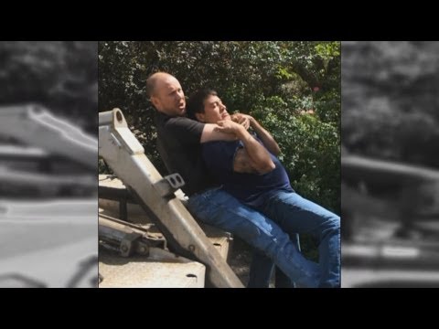 What a well trained pig. I suppose when he fell he was just guiding himself to the ground as well. And the chokehold was simply the repoman holding his arm very tightly as he tried to pull away.