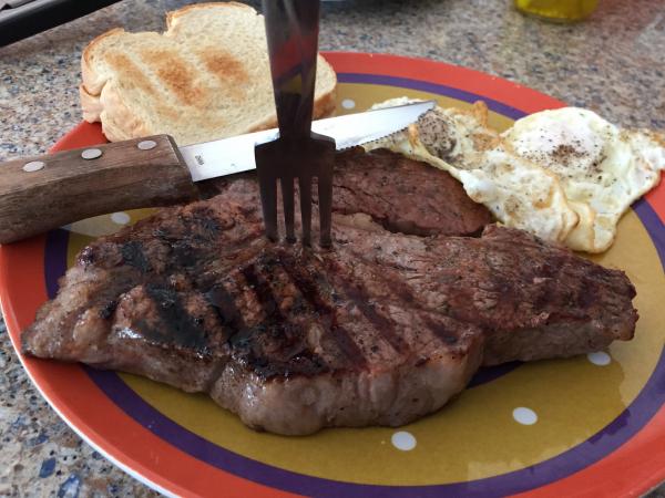 oh yeah, to answer the question, wife and I going to have two bad-ass ribeyes off the grille, twice-baked potatoes, "wedge" salads, and a bottle of William Hill Cab......Comment -