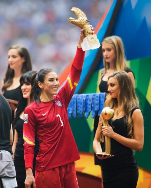 (see the photo of hope solo below, who generally can look ok standing alone or among other members of The Lesbians, but when put next to a truly pretty girl, she looks like some sort of creature from f'n outter space).....