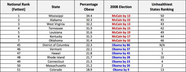 No surprise that southern, republican states have a much higher % of obese.