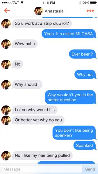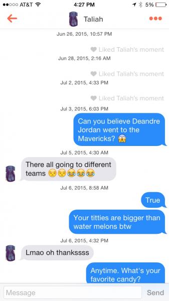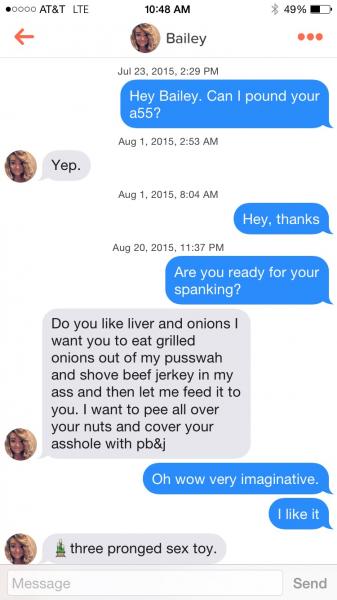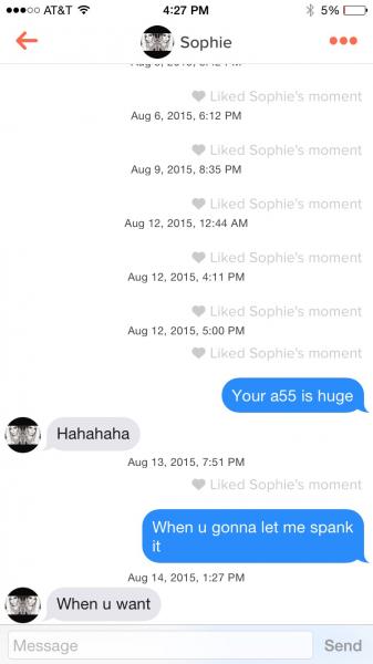 Who here has a tinder? I live right near a college campus and I've scored plenty of tail on it but I usually get on it to penetrate around when im completely bored. Here are some of my conversations, these girls are hilarious. Post yours if you got em