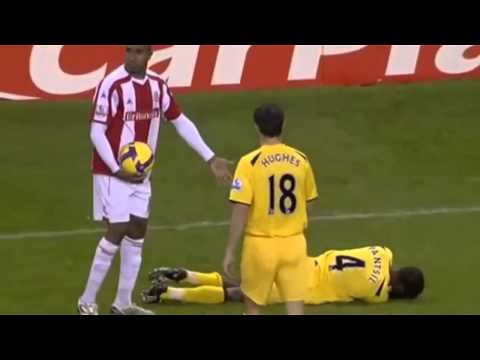 On the hole English players will normally get up after a trip and continue playing,not like these South American or Italian players that act like they've been shot with an elephant gun.Comment -