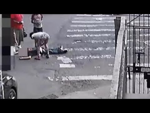 Surveillance video aired by WCBS shows the victim being approached by two men in a Bronx intersection on June 18.