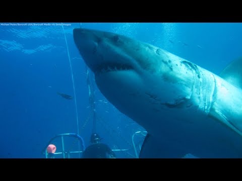 A group of divers came face-to-face with a shark that is half the length of a bus and lived to tell the tale.
