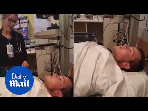 This is the hilarious moment Mark Clayton III (pictured), from Orlando, Florida, makes an extremely lewd suggestion to a female nurse while under anesthetic - and gets ruthless told off by his father. Mark Clayton Jr, his father, filmed the video of his son, who had just had a metal rod placed in his leg. He tells his son to 'quit it' and be respectful when women come in the room'. The video has been viewed more than six million times on Facebook.