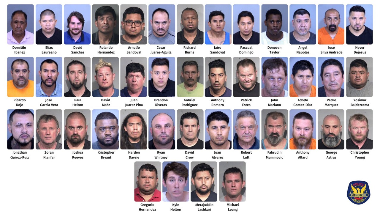 PHOENIX — Police arrested 47 people under suspicion of soliciting prostitution during a recent undercover sting operation at an illicit massage parlor, according to a statement released Thursday.