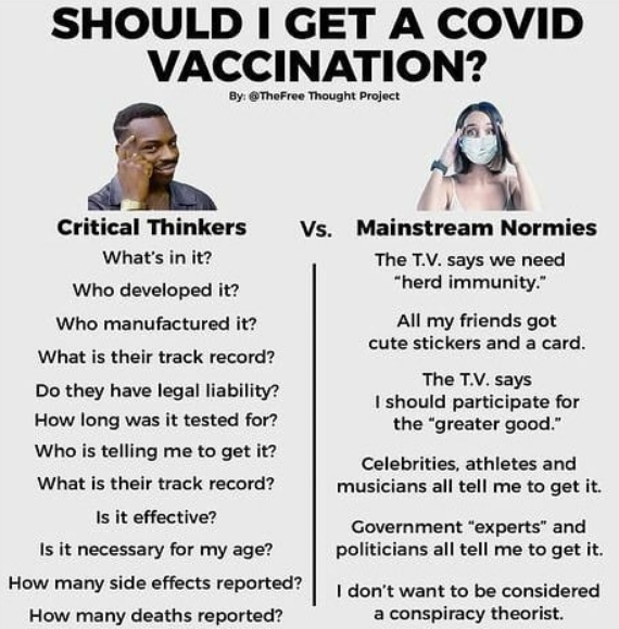 This Covid shit is just a way for the governments of the world to see just how much control over their lives people are willing to give up. How they can get people to turn against each other by denying facts. How they publicly admit these vaccines won't prevent anyone from getting Covid or passing it on to someone else but still try and force people to take the vaccine or lose their job or prevented from traveling, and a certain percentage of the population are supporting this tyranny and will continue to do so. This is what indoctrination looks like.
