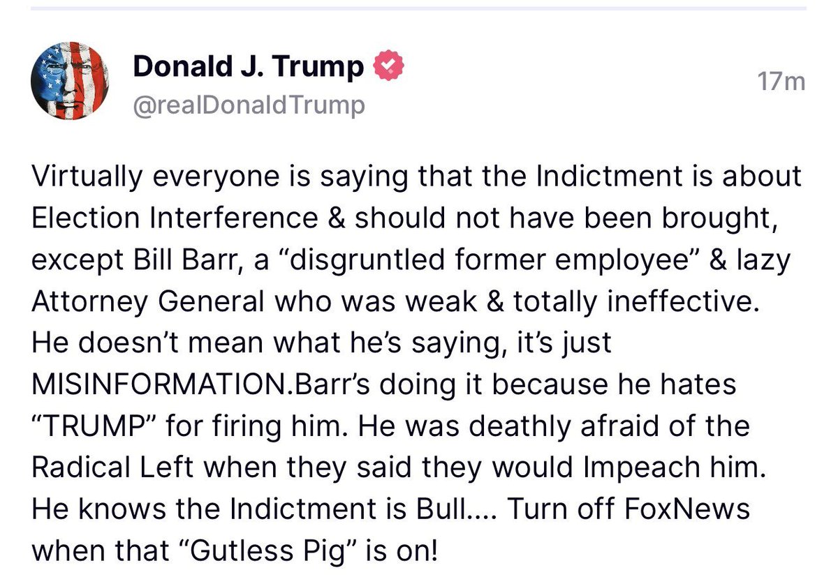 #466Oh yes, and how about this in December 2020?Originally posted by Hareeba!What does it say for Trump's mental awareness when he now thinks he fired Bill Barr who resigned as AG 3 weeks before Biden's inauguration?