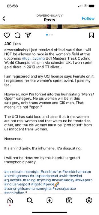 #789VICTORY: Competitive cycling's international governing body has now officially banned male-born athletes from competing in the women's category.Comment -