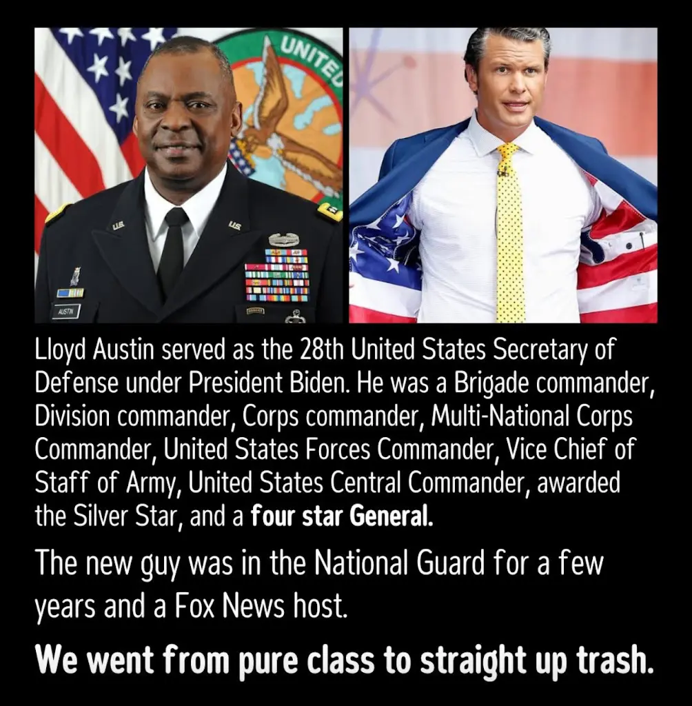#17360Just post what I see. We know hegdick is a womanizing drunk and has no place at the head of a toilet let alone the greatest fighting force in the world.Originally posted by slewfanThis the same guy who left his POST (job) for a week in the hospital, did not tell Biden (president), and then made excuses for himself.?. Did this guy ever see action.?. Was he a DEI hire for his position. Was he instrumental in the Botched Afghanistan debacle.?.
