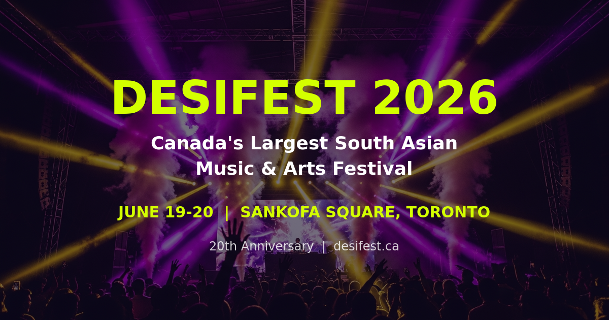 Canada's largest South Asian music and arts festival. Celebrating 20 years of uniting generations, genres, and voices. June 18-20, 2026 at Sankofa Square.