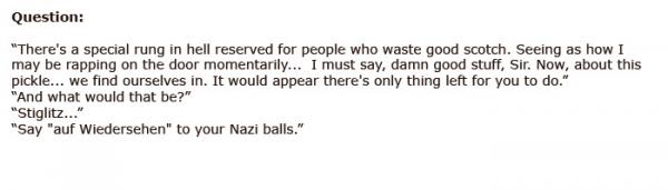 Good Day SBR Pro posters and fellow degenerates! In the spirit of lighthearted competition and due to the fact I'm a big movie buff with tons of time and not a damn thing to do, I will be posting movie quotes from time to time and will be rewarding the first poster to answer correctly with the full film title a free FIVE POINTS!!! Yes that's right 5 whole points!!! Whatever, it's free points. Knowing most of you schmucks will go straight to Google, I will award TEN POINTS to those faithful posters who answer within 3 minutes of the question's time stamp! GOOOOD LUCK!