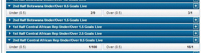 #966just hit this, paid out. 16/1 central republic africa to score 2ndhalf..Originally posted by onemoregoalLooks like willhill are having a bad day