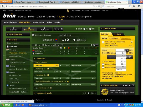 #76Just bumping this... any UK player know if you can put 300-400 on the minor leagues? They have some good Estonia league prices...Originally posted by onemoregoalHey guys, if anyone has a BWIN account, does it let you see the maximum you can bet before you place it?Comment -