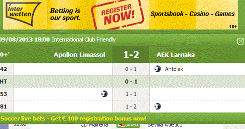 In play - Appollon Limassol - half time 1-1 - over 1.5 second half goals @ 2.10 0.5u