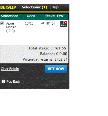 Apoel Nicosia -2.5 @ paddy power 2.80 1.25u